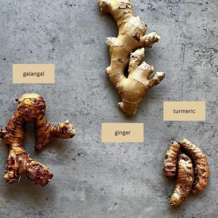 Aroma and Taste: Ginger has a warm, spicy-sweet flavor. Galangal, on the other hand, has a sharper, more citrusy and pine-like taste, with a hint of pepper.